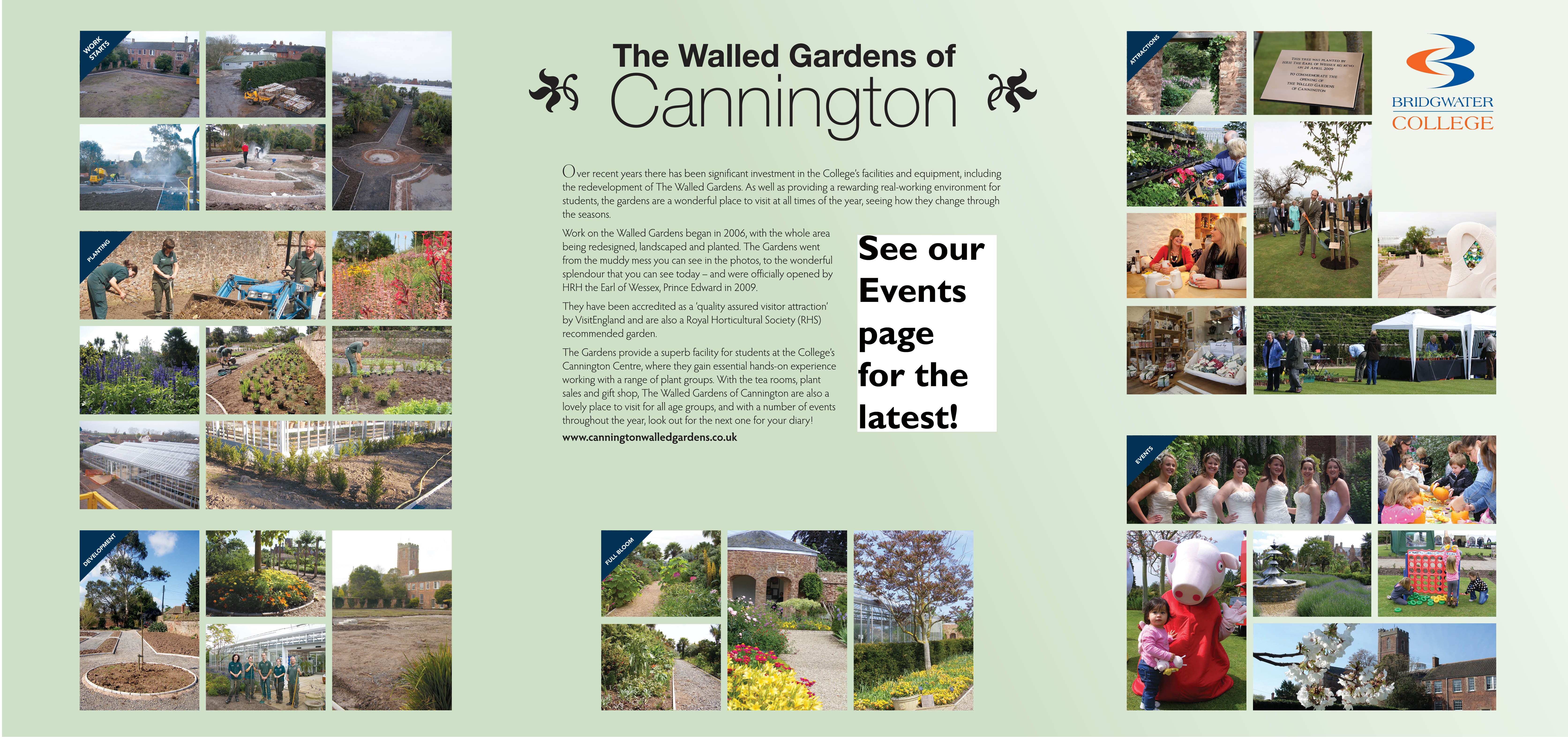 In 2004, Cannington College merged with Bridgwater College. Since the merger there has been significant investment in facilities and equipment, including the redevelopment of the Walled Gardens. The areas now open to the public represent Phase One of the redevelopment. Other areas where work is yet to be undertaken, will see the construction and planting of a Formal Rose Garden.